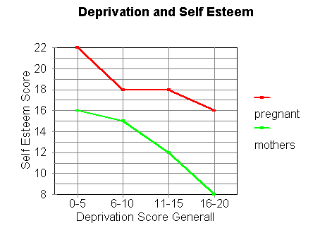Girls who were more deprived, had lower self esteem but those who were pregnant were less affected by these adverse factors. Similarly those with adverse sexual experiences were generally more deprived and had lower self esteem measures. Again the pregnant girls were less affected.